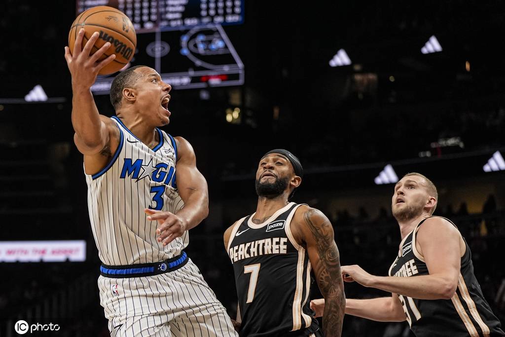 易边再战,约翰逊开场就命中三分,沃克上篮得分,老鹰领先优势扩大到22分。贝恩回敬三分,麦科勒姆两罚全中,奥孔古连续取分,老鹰82-56领先26分。沃克再中三分,卡特三分回敬,沃克很快又投进三分,领先优势回到29分。班凯罗连续突破得分,贝恩再中三分,杰文-卡特跟上一记远投,分差缩小到23分。约翰逊续上三分,里萨谢扣篮得分,三节结束前魔术连追五分,三节打完老鹰104-83领先21分。
